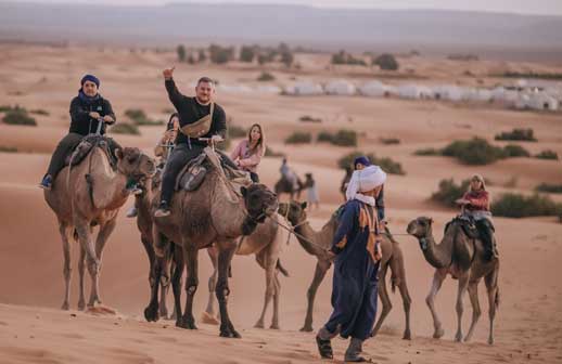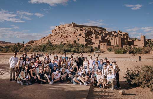 El grupo realizó un completo tour por Marruecos, que incluyó Ouarzazate, Merzouga️ (la puerta al Sahara marroquí y límite natural con Argelia) y las Gargantas del Todra. Se realizó un campamento en pleno desierto luego de poder disfrutar de la puesta del sol sobre el mar de arena del Sahara. Uno de los momentos más emocionantes de ese viaje fue un paseo en dromedario al amanecer para llegar hasta la cumbre de una duna y esperar allí la salida del sol.