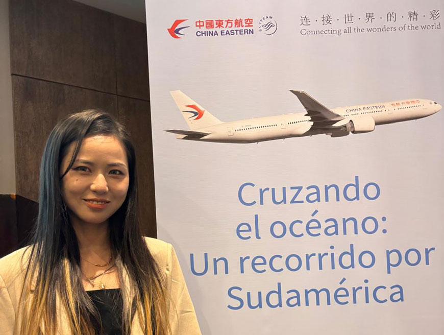 Carrie Guan también detalló la aeronave que China Eastern va a utilizar para su nueva ruta. “Es un Boeing 777-300ER, la aeronave insignia de nuestra aerolínea. Cuenta con configuraciones de primera clase (con suites cerradas), una clase ejecutiva (con asientos-cama de 180°) y la clase turista”. Destacó que los pasajeros de clase ejecutiva disfrutan de Wi-Fi de alta velocidad gratuito a bordo y puso el foco en una política comercial muy atractiva que los operadores pueden proponer al mercado: con pasajes en business en la ruta Buenos Aires-Shanghai, los usuarios acceden a categoría superiores del programa Eastern Miles, que da derecho a upgrades. La ejecutiva explicó que “luego de este primer viaje, el mismo pasajero puede realizar otro en Business a precio de un viaje en económica o un viaje en Primera al precio de un business. Además, en función del nivel de membresía, se regalan varios upgrades al año”.