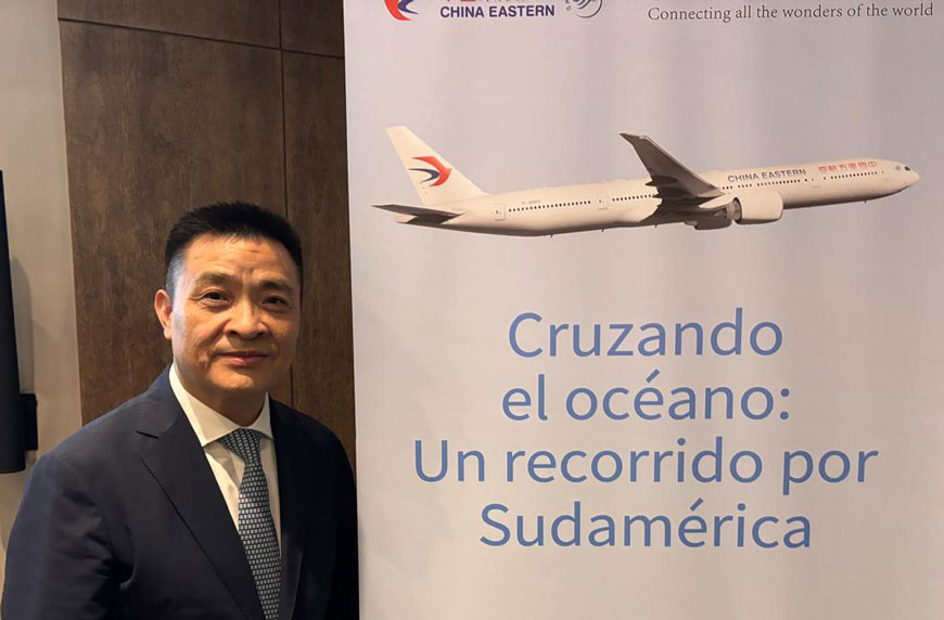 La parte central de los discursos estuvo a cargo de las autoridades de China Eastern. El primero en tomar la palabra fue Gong Yukai, vicepresidente senior de Marketing y Ventas de la compañía. Calificó la ruta como un hito en la construcción conjunta del Corredor Sur entre China y el Sur Global. “Por primera vez esta ruta establece un enlace aéreo que conecta el noreste de Asia, Oceanía y Sudamérica. Reduce los tiempos de viaje entre China y Sudamérica en aproximadamente cuatro horas”. Su intervención fue traducida en simultáneo al inglés y al español, simbolizando así el enlace a tres países, tres idiomas y tres culturas que propone el nuevo vuelo.