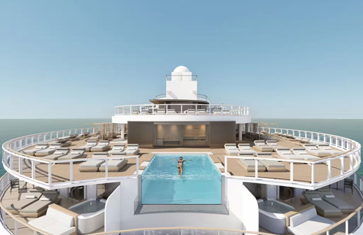 Los puentes de piscina del Norwegian Aura crecerán más de un 20 % respecto a los de sus predecesores, convirtiéndose en los más amplios de la flota. Incluirán más asientos, un nuevo jacuzzi infinito, pantallas LED de mayor tamaño y zonas de relax.