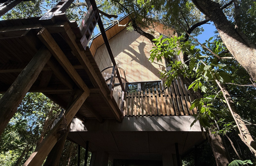 Entre Árboles contará con 14 unidades denominadas “houses”, conectadas entre sí mediante pasarelas de madera que recorren el predio entre árboles y plantas nativas. Las Birdhouses están elevadas por encima de las copas de los árboles y cuentan con decks y piscinas privadas. Las Treehouses, por su parte, están ubicadas al nivel de los troncos; y las Tiny houses son unidades accesibles próximas al área de recepción. Todas incorporan sistemas de domótica, con control inteligente de iluminación, climatización y entretenimiento mediante asistentes digitales.