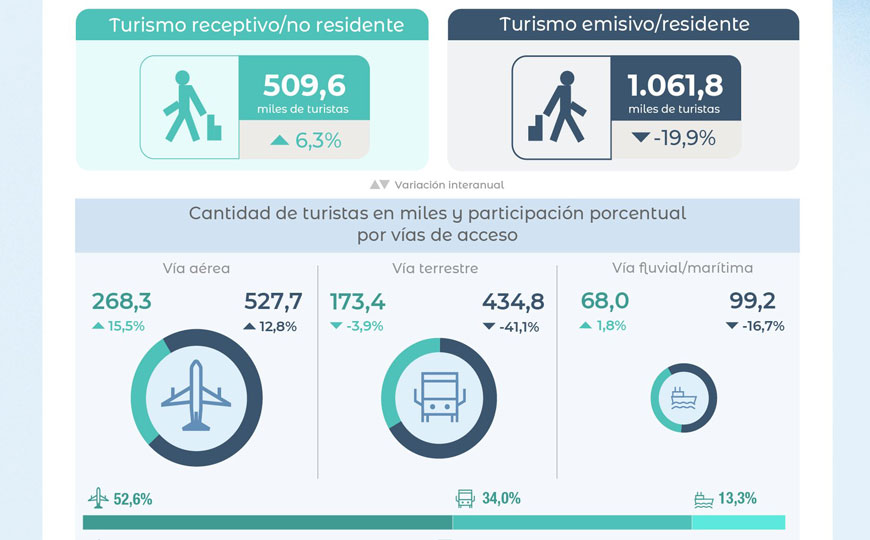 En el primer trimestre de 2026, el turismo emisivo cayó con fuerza, mientras que el receptivo mostró una leve recuperación. Sin embargo, no alcanza a equilibrar la balanza.